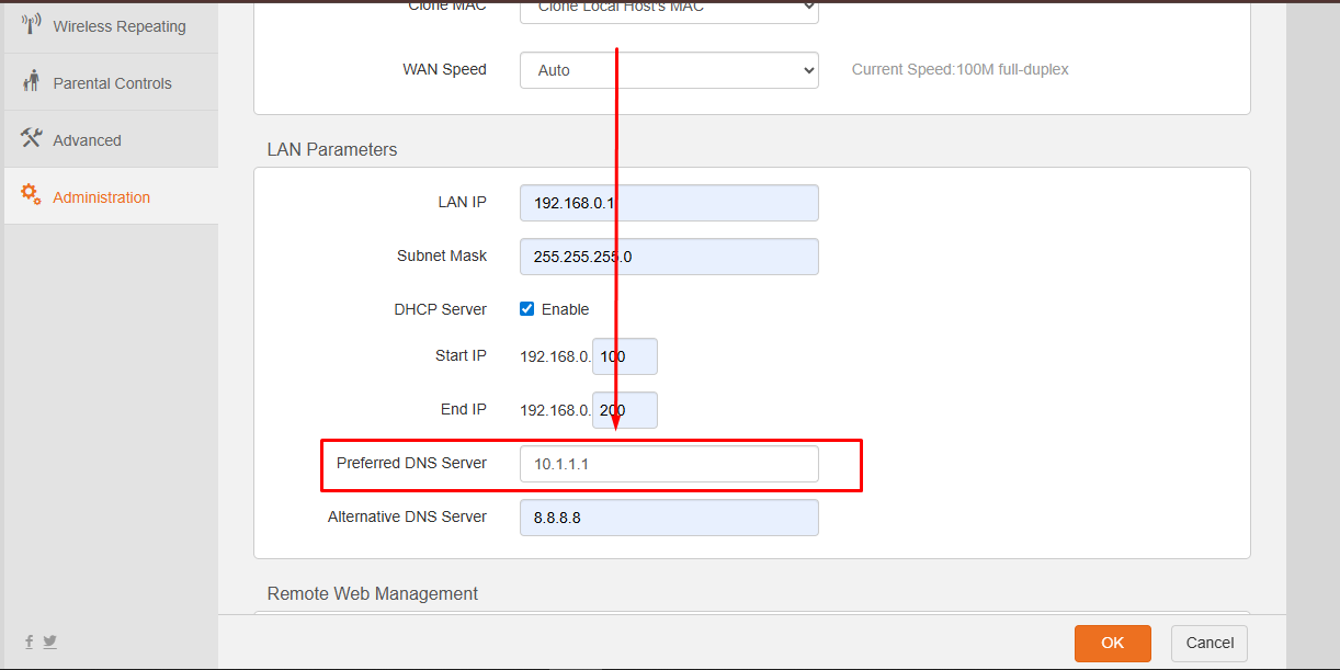 DHCP Settings এর মধ্যে Preferred DNS এবং alternative DNS অপশন দেখতে পাবেন। এখানে আপনি আপনার পছন্দমতো DNS সার্ভার আইপি বসাতে পারবেন। নিচে কিছু জনপ্রিয় DNS সার্ভারের আইপি দেয়া হলো: